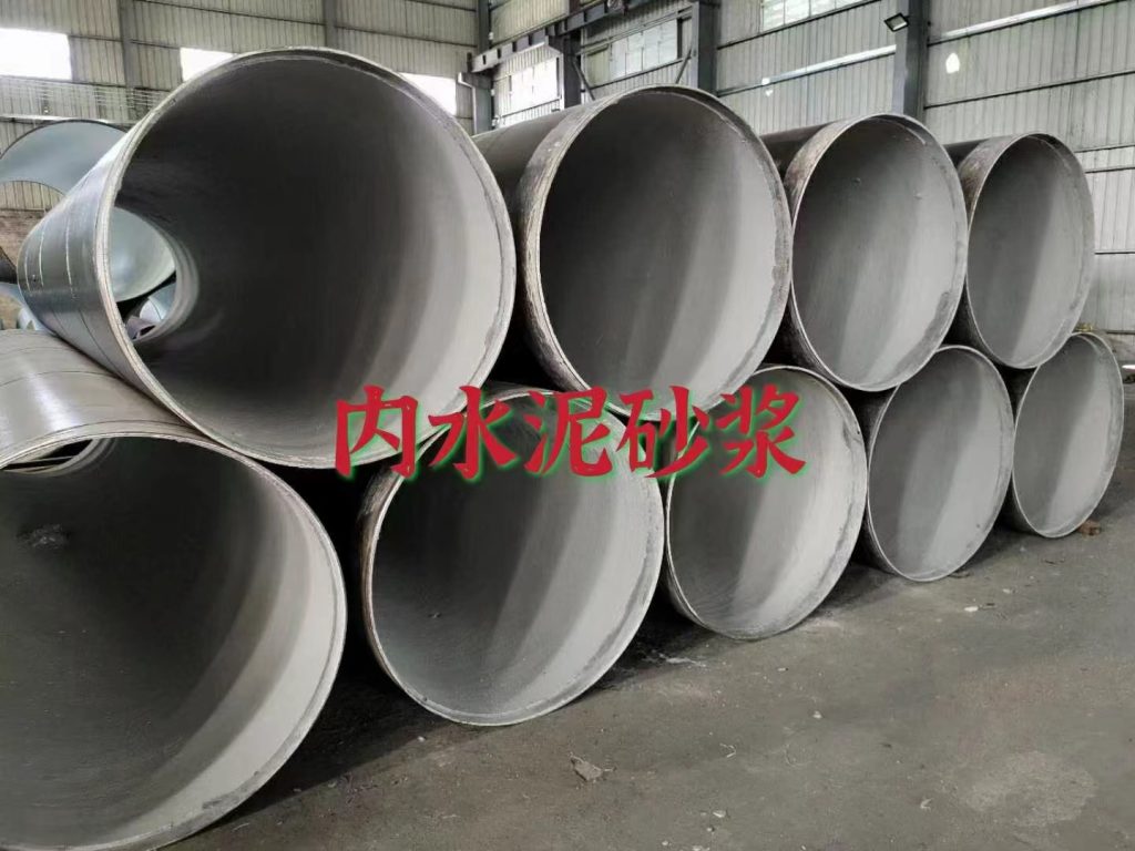 水泥砂浆防腐钢管厂家操作过程中,主要是严格按照水泥、沙子、水按特定的比例进行混合,既可以保证砂浆的强度,由可以保证防腐过程中砂浆好用,提高生产效率。再者就是水泥砂浆防腐完毕后,防腐层不能干燥太快,太快容易产生大的裂纹造成坍塌现象。水泥砂浆防腐钢管实体厂家水泥砂浆防腐钢管厂家为了保证水体不与金属管道接触,管道内壁由水泥砂浆作为防腐层与钢管紧密相连,防止了腐蚀穿孔,延长了管道使用寿命。水泥砂浆防腐钢管厂家生产方式主要有两种,一种是离心法,另一种是人工挂网涂覆法。离心法主要适同于DN1200口径以下的管道内衬施工,超过DN1200口径以上需要使用人工挂网涂覆的方式进行作业。