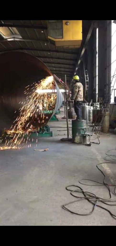 我公司具体有4条先进的螺旋管设 产线,制作Φ159-Φ3820(壁厚5mm-30mm)的双面埋弧螺旋焊钢管,年设 产本事5万吨。公司技术力量雄厚,螺旋钢管产品从原料采购,研发设计流程,产品研究发明至销售严格执行ISO9001质量体系标准。产品大范围应用于流体输送,天然气,钢结构,船舶,热力,石油管线,填海打桩等领域。螺旋焊管(双面埋弧螺旋焊管)是以带钢卷板为原材料,经常温挤压成型,以自动双丝双面埋弧焊工艺焊接而成的螺旋缝钢管.原材料即带钢卷,焊丝,焊剂。在投入前都要经过严格的理化检验。带钢头尾对接,采用单丝或双丝埋弧焊接,在卷成钢管后采用自动埋弧焊补焊。海门市大口径国标螺旋钢管价格成型前,带钢经过矫平、剪边、刨边,表面清理输送和予弯边处理。采用电接点压力表控制输送机两边压下油缸的压力,确保了带钢的平稳输送。采用外控或内控辊式成型。每批钢管头三根要进行严格的首检制度,检查焊缝的力学性能,化学成份,溶合状况,钢管表面质量以及经过无损探伤检验,确保制管工艺合格后,才能正式投入生产。采用焊缝间隙控制装置来保证焊缝间隙 焊接要求,管径,错边量和焊缝间隙都到严格的控制。内焊和外焊均采用美国林肯电焊机进行单丝或双丝埋弧焊接,从而获得稳定的焊接规范。