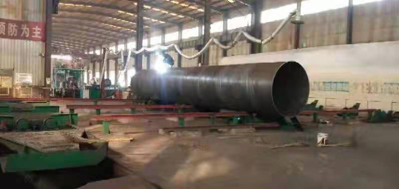 大口径螺旋钢管厂家(双面埋弧螺旋焊管)是以带钢卷板为原材料,经常温挤压成型,以自动双丝双面埋弧焊工艺焊接而成的螺旋缝钢管.原材料即带钢卷,焊丝,焊剂。在投入前都要经过严格的理化检验。带钢头尾对接,采用单丝或双丝埋弧焊接,在卷成钢管后采用自动埋弧焊补焊。成型前,带钢经过矫平、剪边、刨边,表面清理输送和予弯边处理。采用电接点压力表控制输送机两边压下油缸的压力,确保了带钢的平稳输送。采用外控或内控辊式成型。地埋用大口径防腐螺旋管厂家每批钢管头三根要进行严格的首检制度,检查焊缝的力学性能,化学成份,溶合状况,钢管表面质量以及经过无损探伤检验,确保制管工艺合格后,才能正式投入生产。采用焊缝间隙控制装置来保证焊缝间隙满足焊接要求,管径,错边量和焊缝间隙都得到严格的控制。内焊和外焊均采用美国林肯电焊机进行单丝或双丝埋弧焊接,从而获得稳定的焊接规范。采用空气等离子切割机将钢管切成单根。焊完的焊缝均经过在线连续超声波自动伤仪检查,保证了100%的螺旋焊缝的无损检测覆盖率。若有缺陷,自动报警并喷涂标记,生产工人依此随时调整工艺参数,及时消除缺陷。切成单根钢管后,每批钢管头三根要进行严格的首检制度,检查焊缝的化学成份,溶合状况,钢管表面质量以及经过无损探伤检验,确保制管工艺合格。焊缝上有连续声波探伤标记的部位,经过手动超声波和X射线复查,如确有缺陷,经过修补后,再次经过无损检验,直到确认缺陷已经消除。带钢对焊焊缝及与螺旋焊缝相交的丁型接头的所在管,全部经过X射线电视或拍片检查。